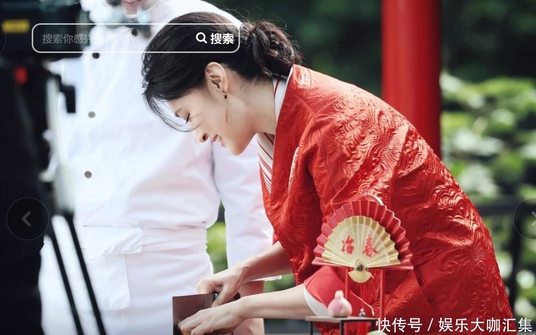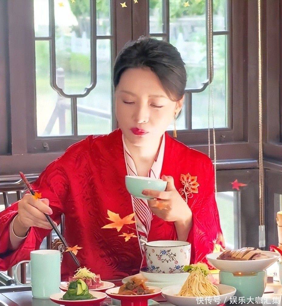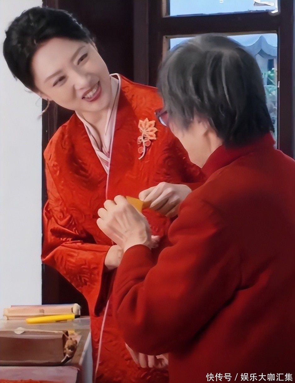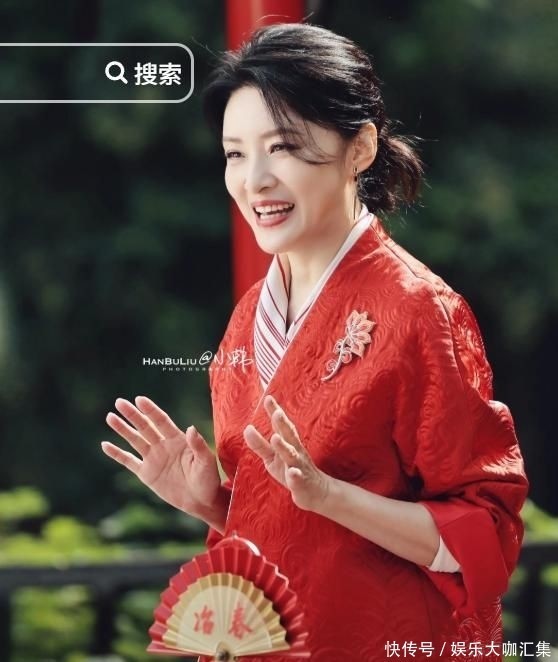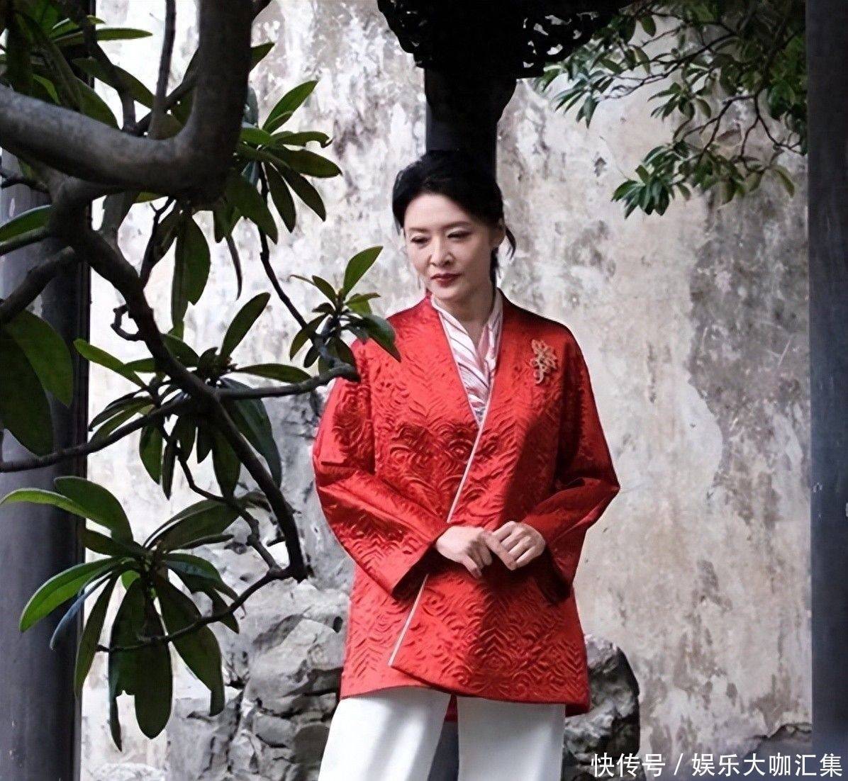 游客用手机抓拍的原片显示,她将长发挽成古典发髻,佩戴银质流苏耳坠,红衣如火,白裤如雪,整体造型极具视觉冲击力。尽管笑起时眼角细纹清晰可见,但身姿挺拔,气场沉稳,仿佛一棵历经风霜却依旧挺立的青松。